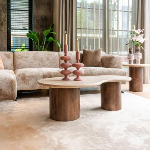 Travertin, een natuursteen met een tijdloze uitstraling, heeft de mogelijkheid om een gevoel van luxe en elegantie toe te voegen aan elk interieur. Travertin salontafels zijn bijvoorbeeld niet alleen functioneel, maar dienen ook als prachtige kunstwerken die een ruimte verrijken. De subtiele textuur en warme kleurspeling van travertin brengt een natuurlijk element in huis dat rust en kalmte uitstraalt. Door te spelen met contrasten, bijvoorbeeld strakke witte muren en minimalistische meubels kan een travertin salontafel met zijn natuurlijke textuur en warme tinten een opvallend contrast vormen. Hierdoor kunnen travertin meubels een interessant visueel accent vormen in een modern interieur, waar ze samenwerken met strakke lijnen en minimalistische elementen om een rustige esthetiek te creëren.
